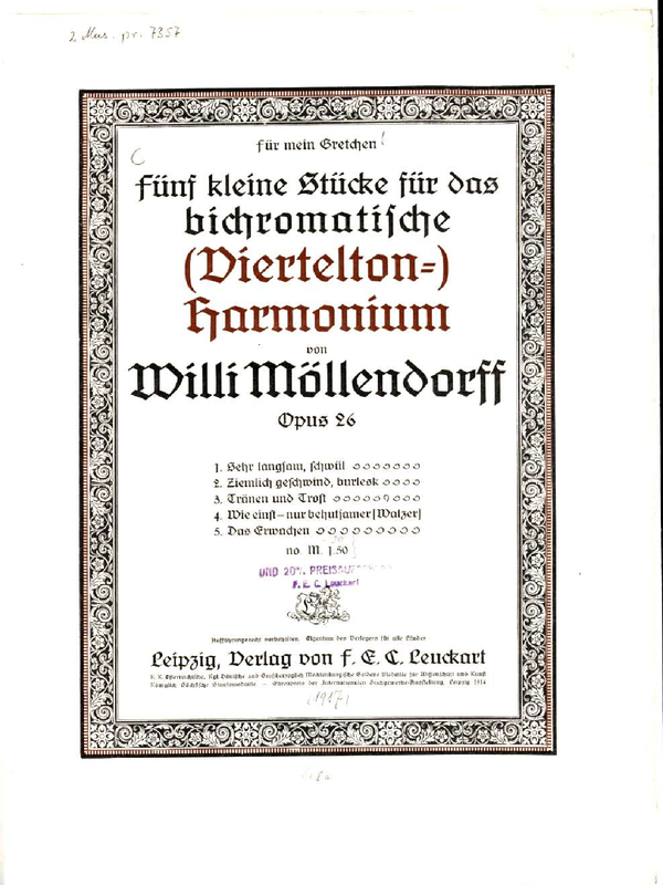| Extra Information | This pieces were included on Möllendorff's book "Musik mit Vierteltönen" (Music for 4ths of Tone) |