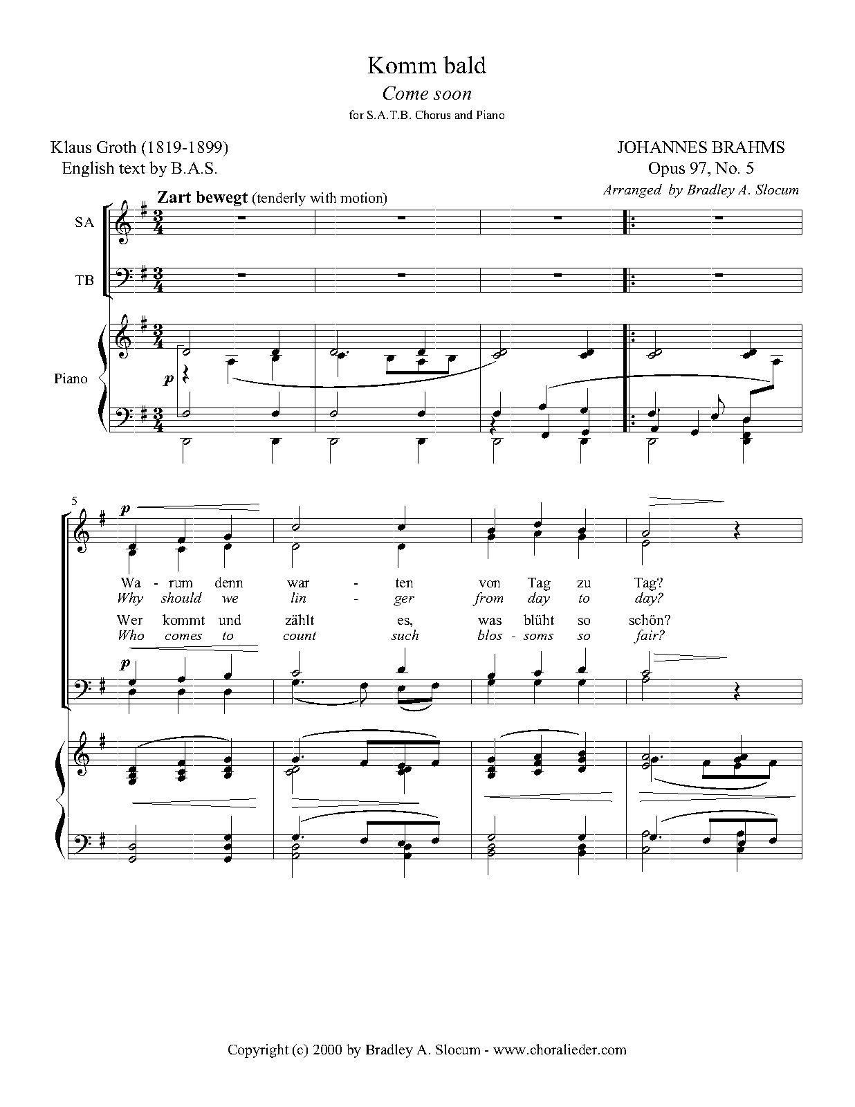 | Movements/SectionsMov'ts/Sec's | 5 songs: