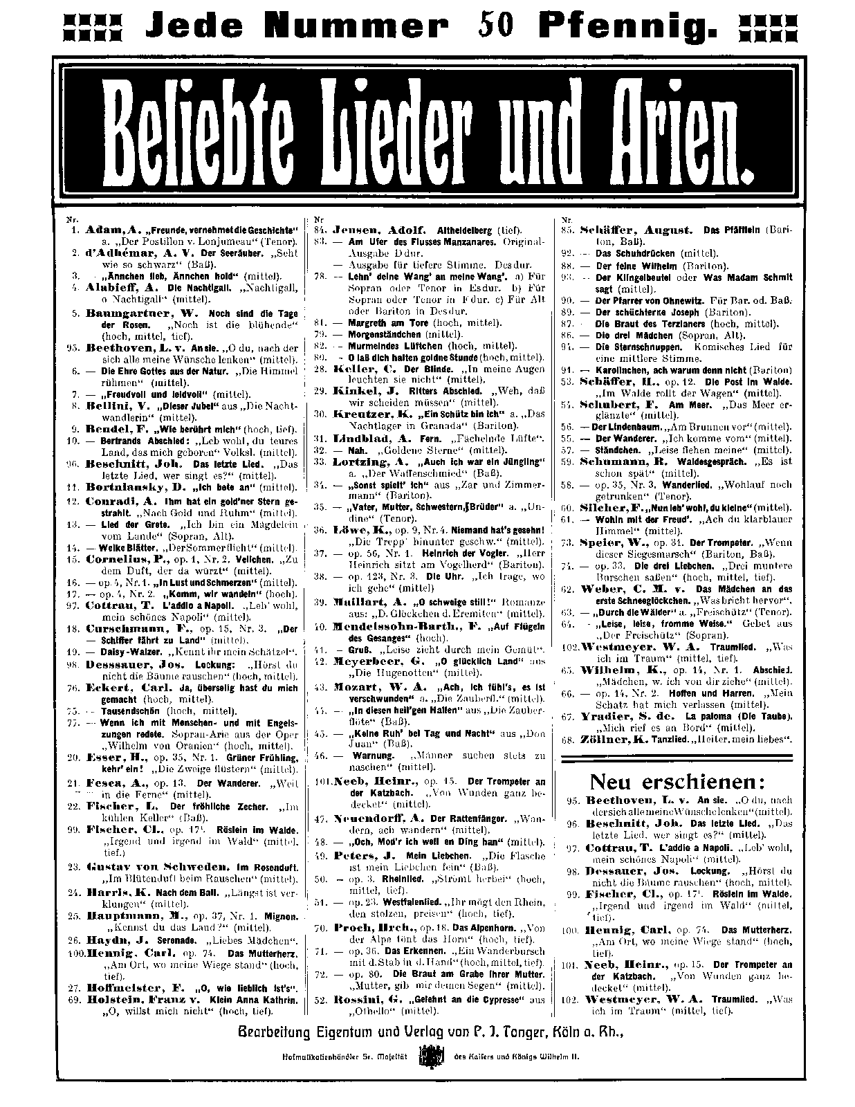 | First Publication | 1841 – Braunschweig: G.M. Meyer (for tenor voice) |