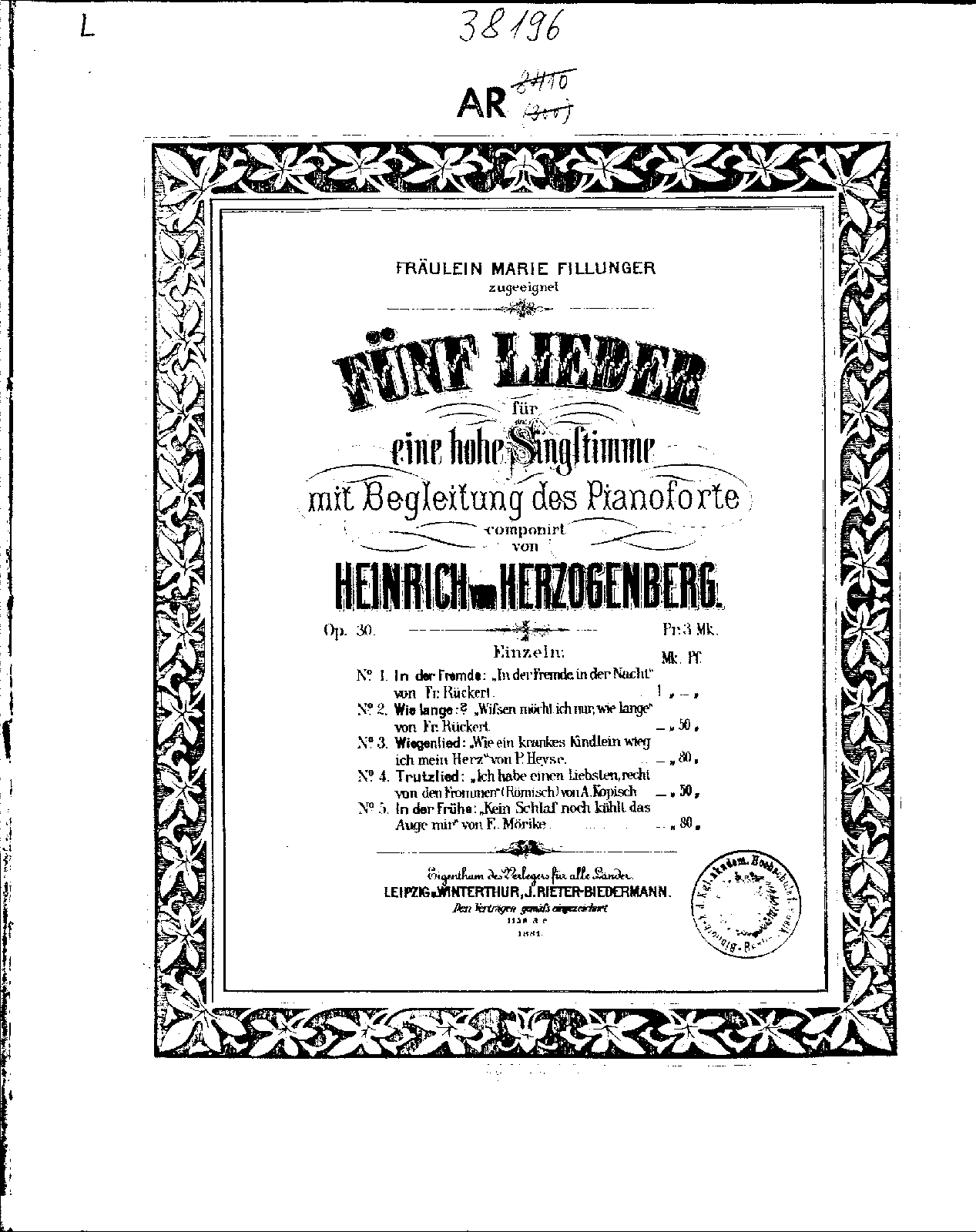 Publisher. Info. Leipzig: J. Rieter-Biedermann, 1881. Plate 1158.