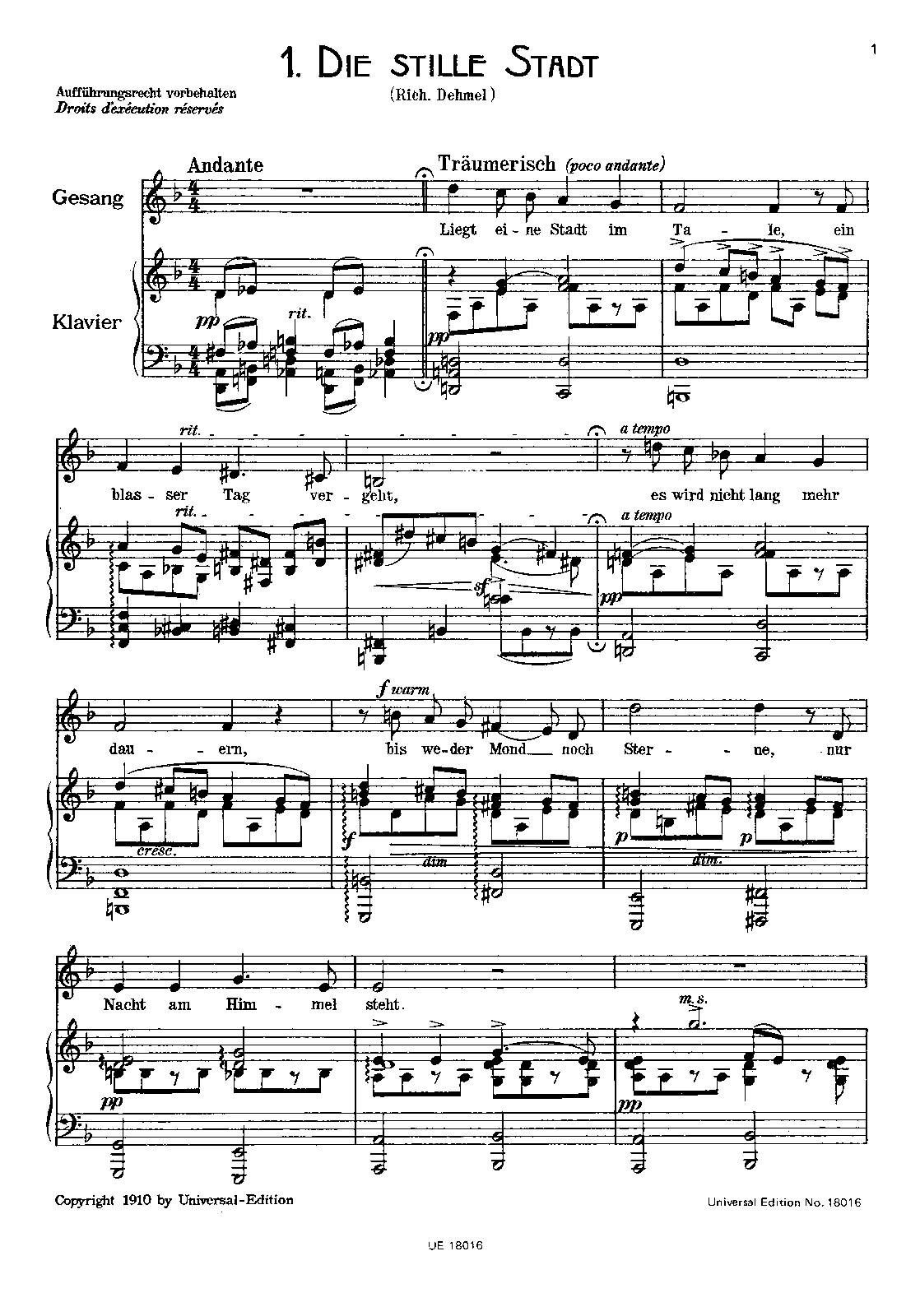 Publisher. Info. Vienna: Universal Edition, 1910. Plate U.E. 2983.