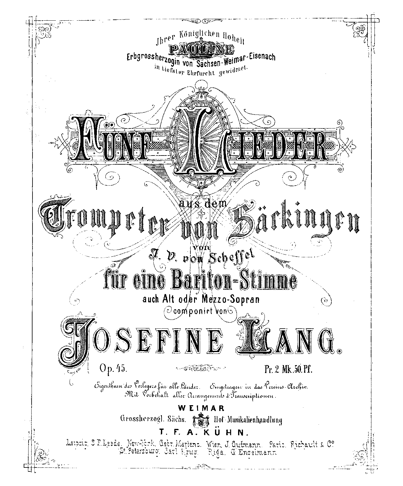| Alternative. Title | Fünf Lieder aus dem Trompeter von Säckingen von J.V. von Scheffel für eine Bariton-Stimme auch Alto oder Mezzo-Sopran |