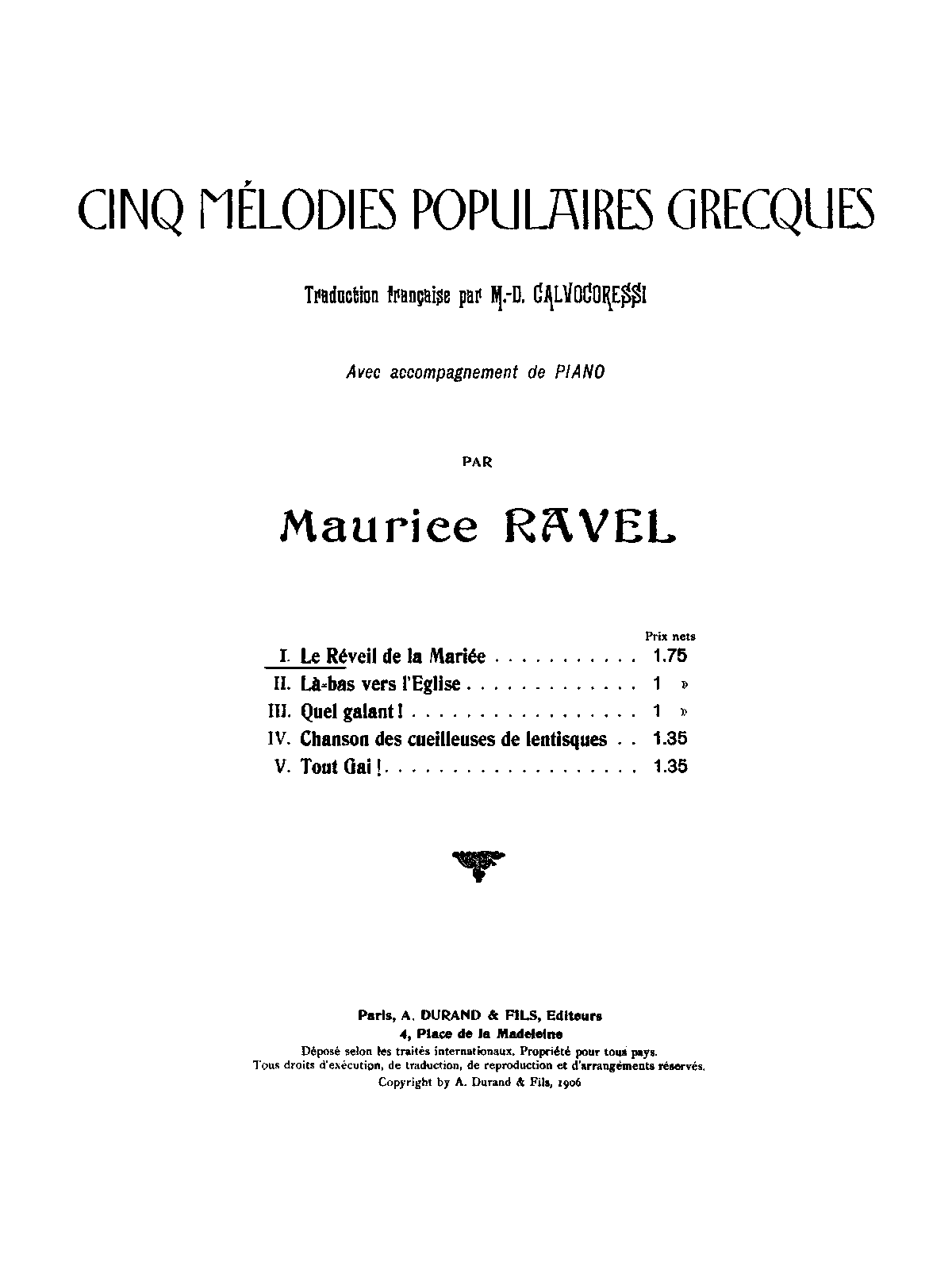| Name Translations | Cinq mélodies populaires grecques; Mélodies populaires grecques |