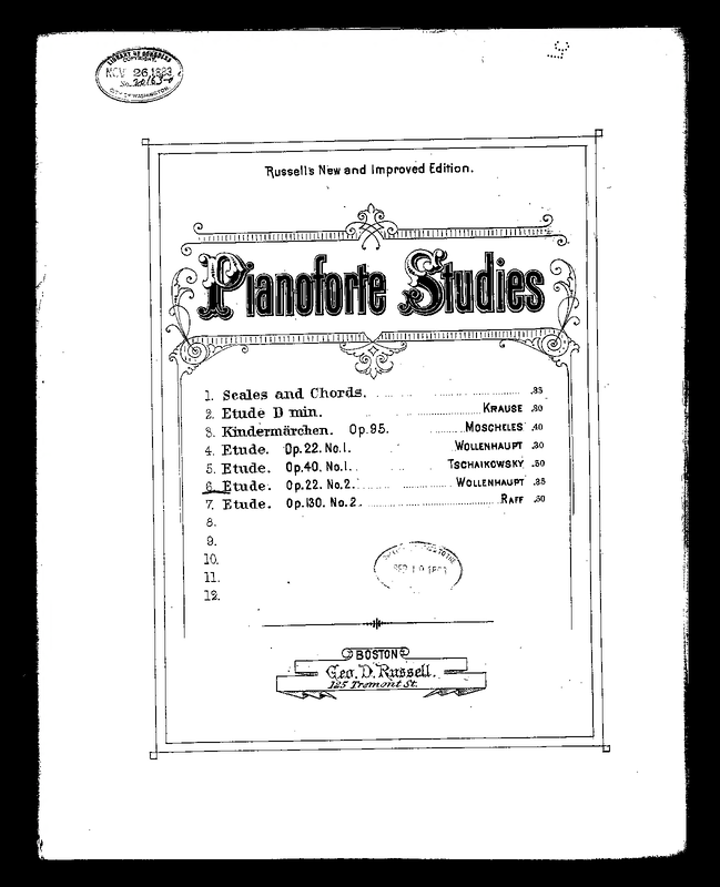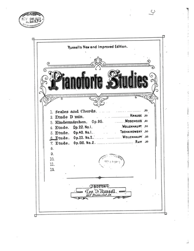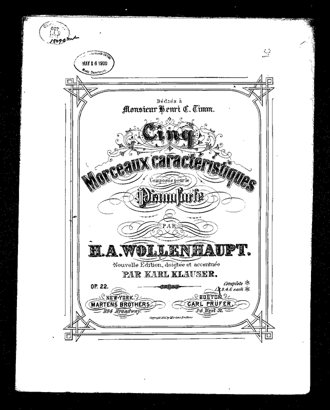 Wollenhaupt Album, a Collection of Eleven Favorite Pieces (pp.30-33) New York: Schirmer, 1884/1908. Plate 20565.