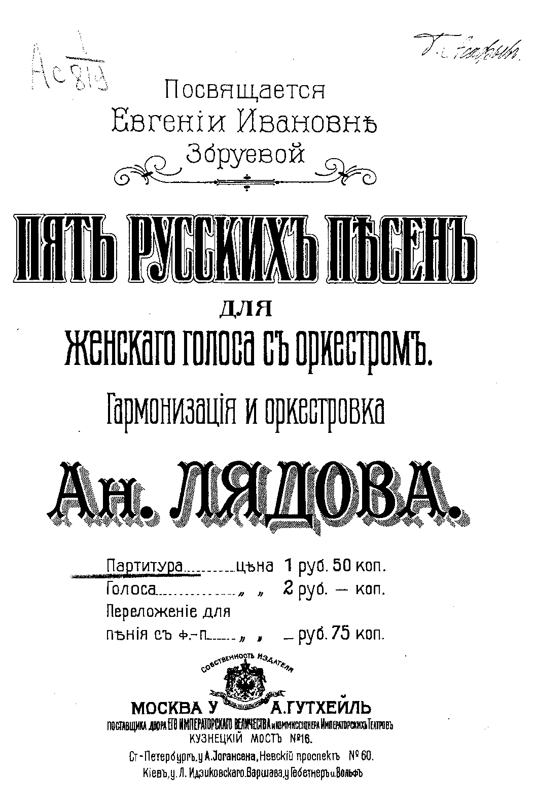 Publisher. Info. Moscow: Gutheil, n.d.(ca.1906). Plate A. 9091 G.