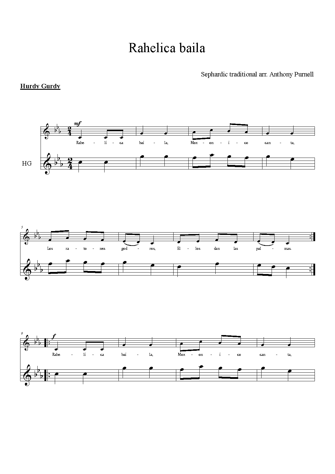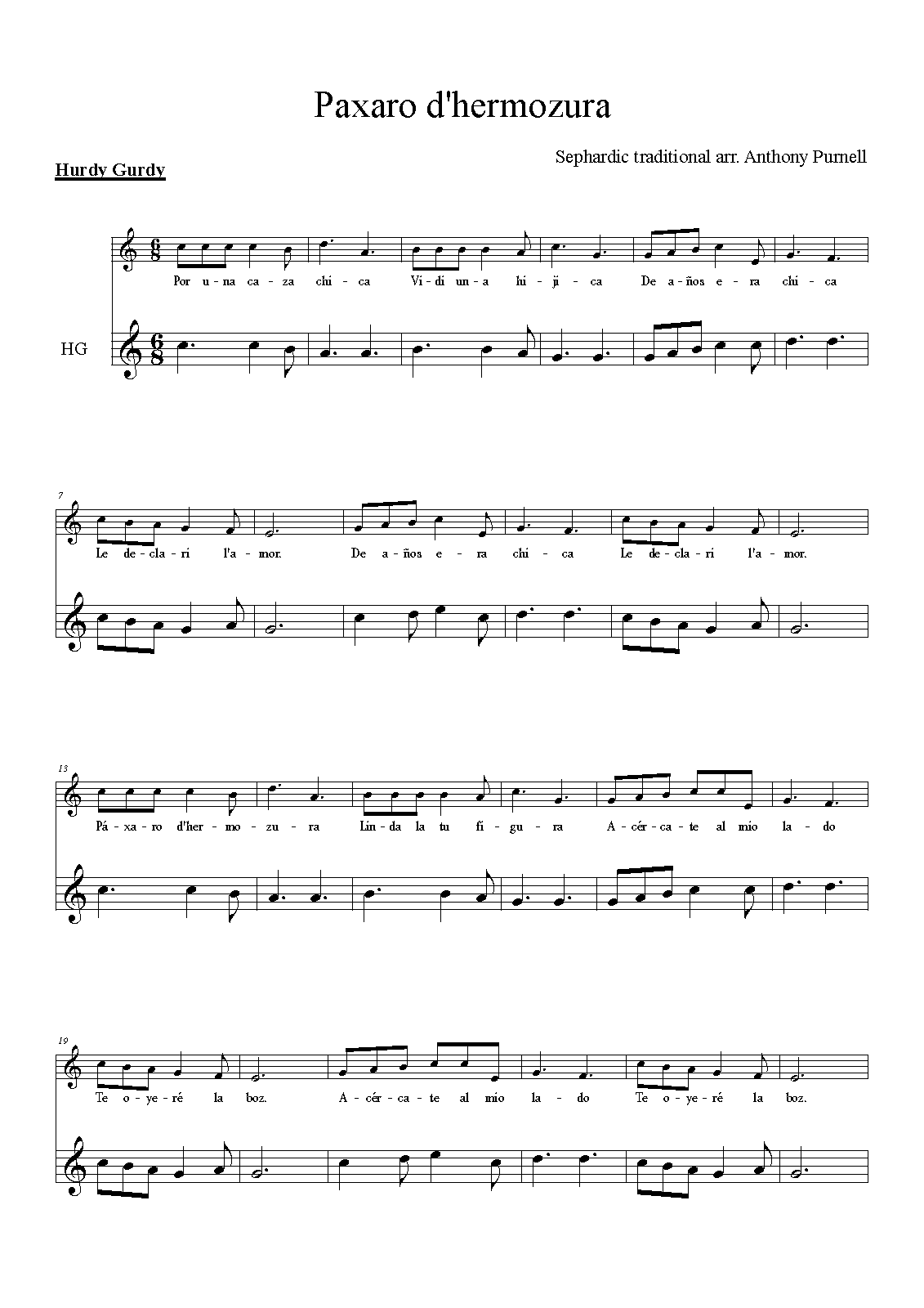 Accompaniment for hurdy gurdy (or piano) needed for no. 1 and optional for numbers 3 and 5. Percussion may be added ad lib.