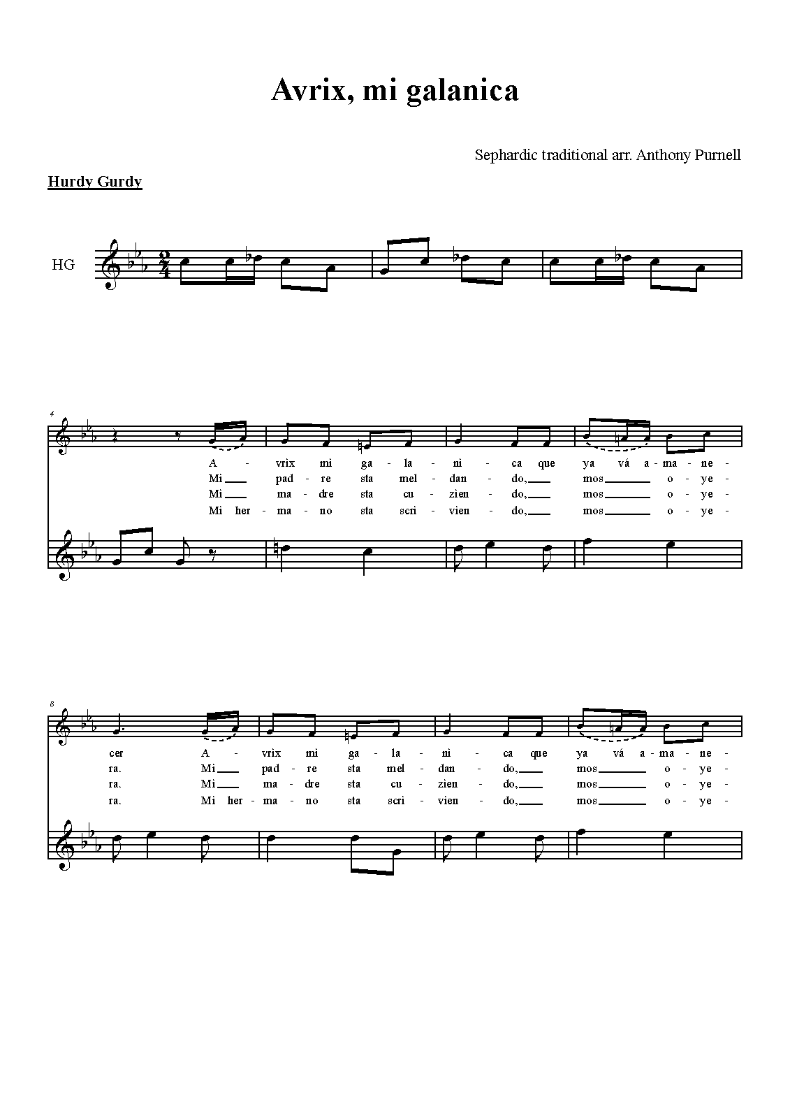 | Instrumentation | mixed chorus (SATB), hurdy gurdy or piano, percussion ad lib. (arranged) |