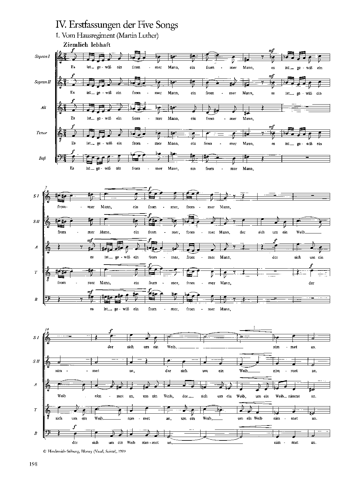 | Alternative. Title | Five Songs on Old Texts For five-part chorus of mixed voices unaccompanied |