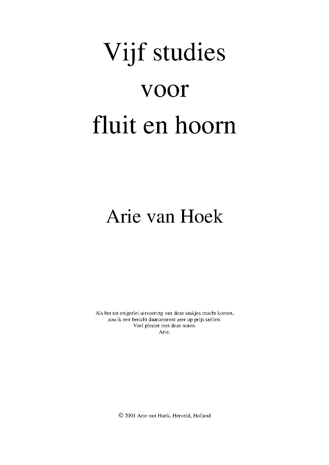 5 Studies voor fluit en hoorn (Hoek, Arie van)