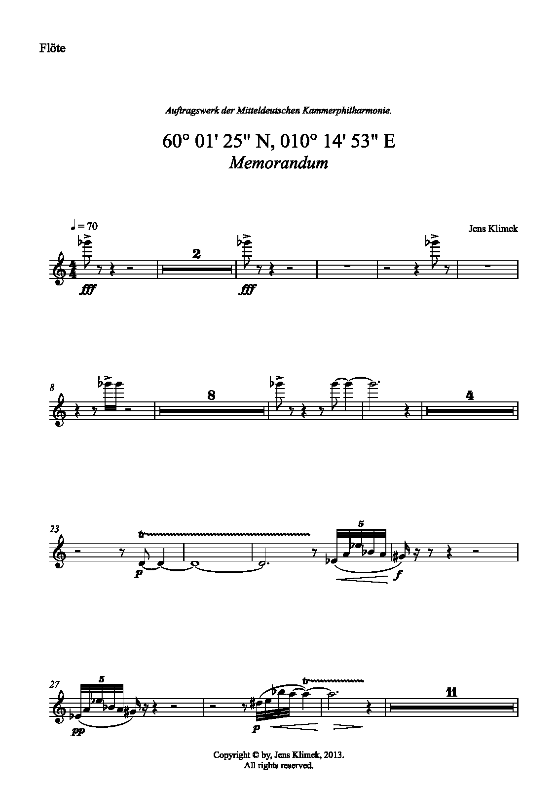 60° 01' 25" N, 010° 14' 53" E: These are the coordinates of a little isle at the Norwegian coast called Utoya. On 22 July 2011, a mass massacre took place at the AUF's summer youth camp, where 650 young people were staying. This work does not describe programmatically the inconceivable events and the terrible events should not be imitated musically. It is a memorial against fatal cruelty which can be revealed in man when fanaticism and ideology come together.