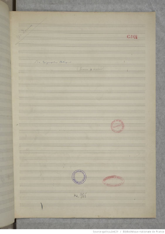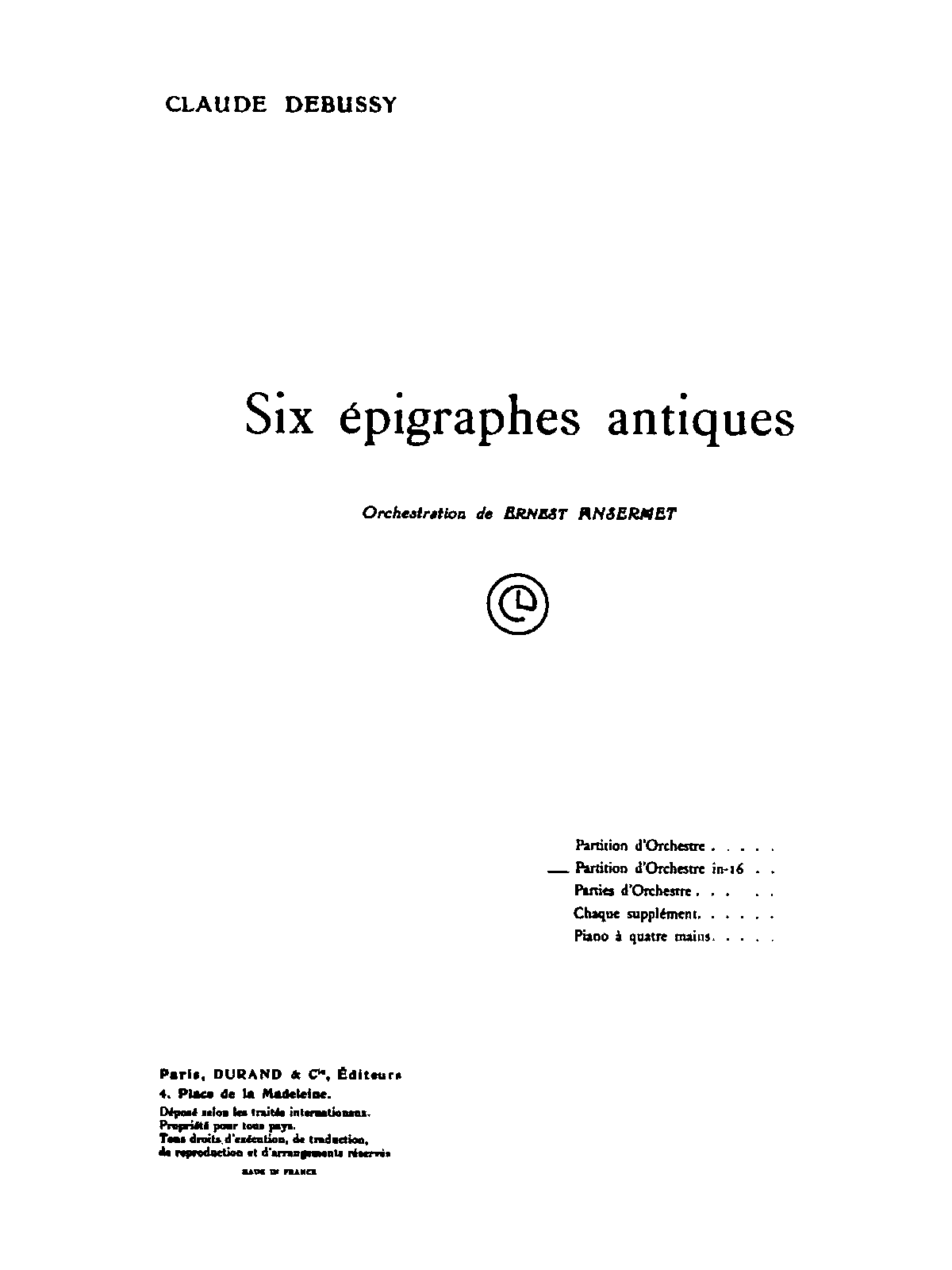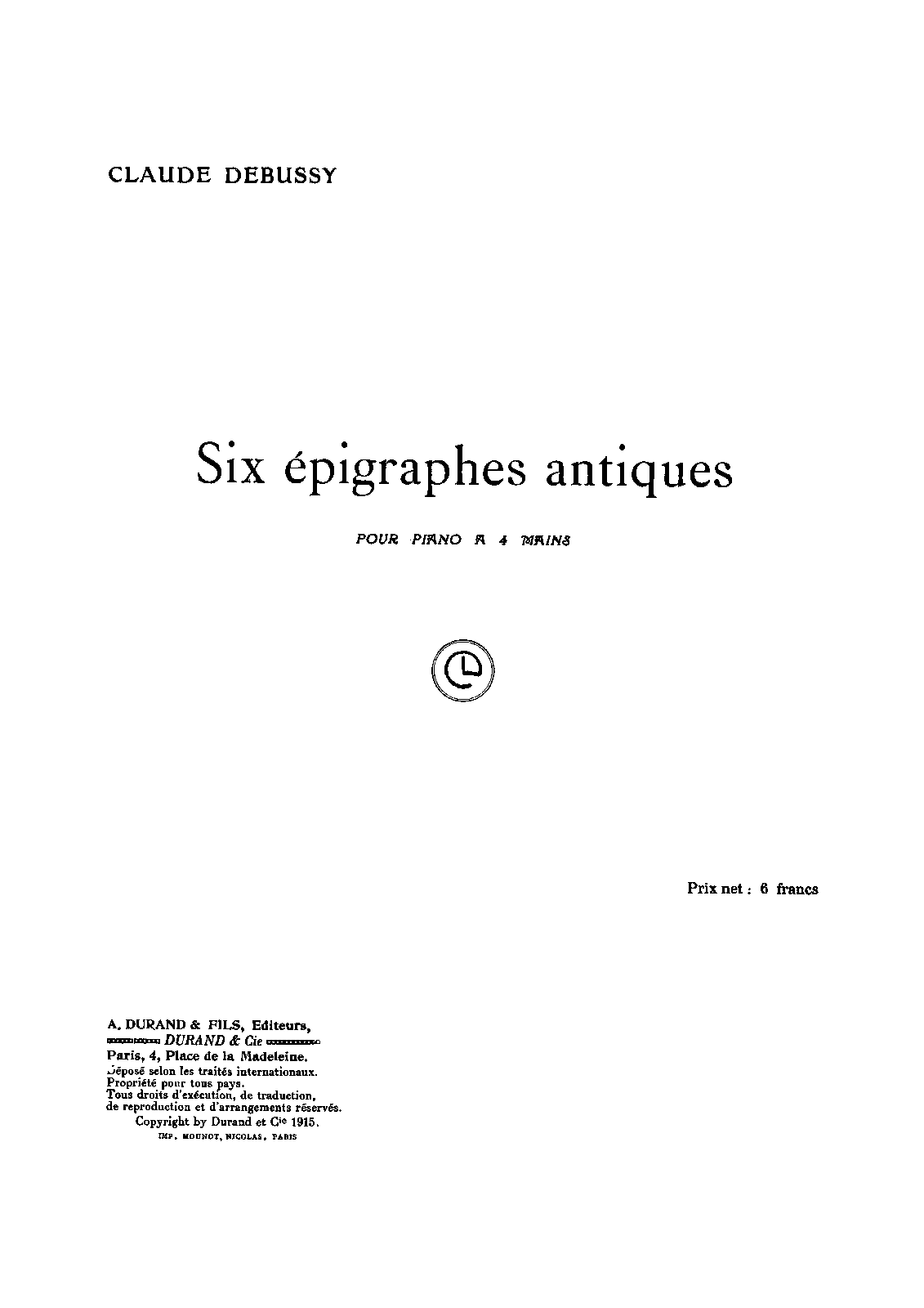 Publisher. Info. Paris: Durand & Cie., 1915. Plates D. & F. 9303-9308.