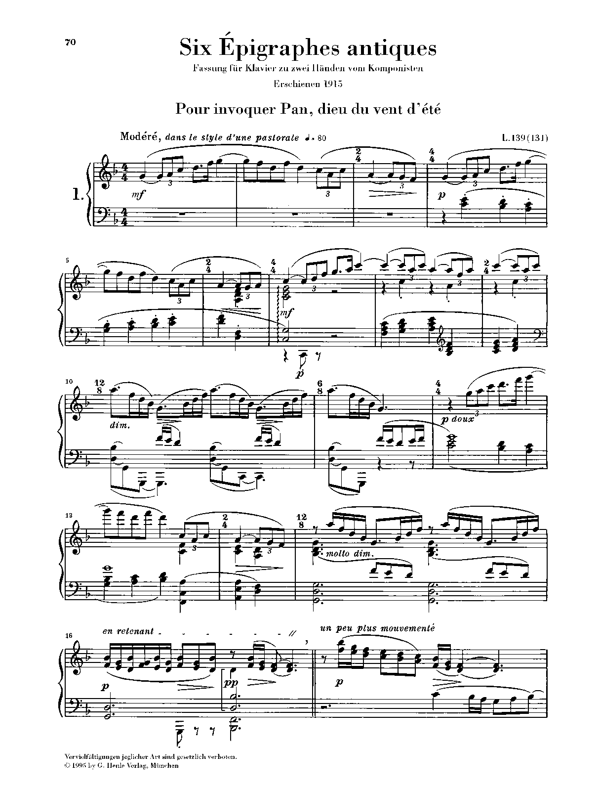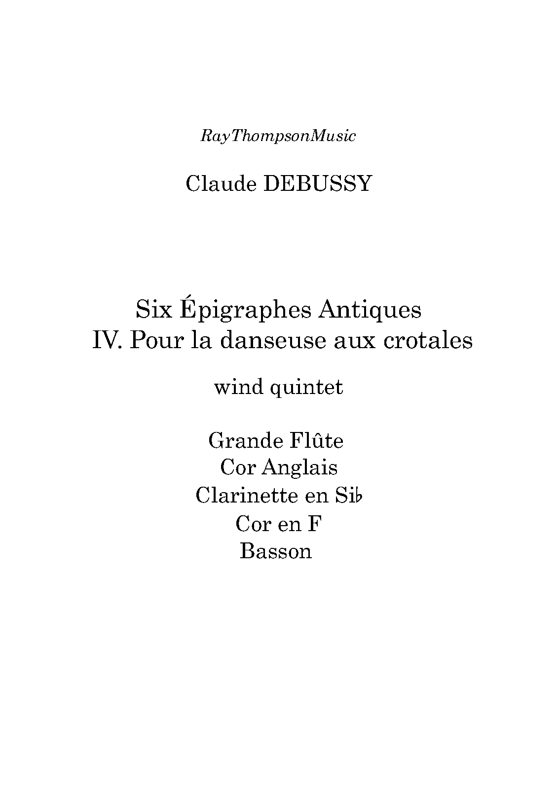 6 more: 1. Pour invoquer Pan, dieu du vent d'été • 2. Pour un tombeau sans nom • 3. Pour que la nuit soit propice • 4. Pour la danseuse aux crotales • 5. Pour l'Égyptienne • 6. Pour remercier la pluie au matin