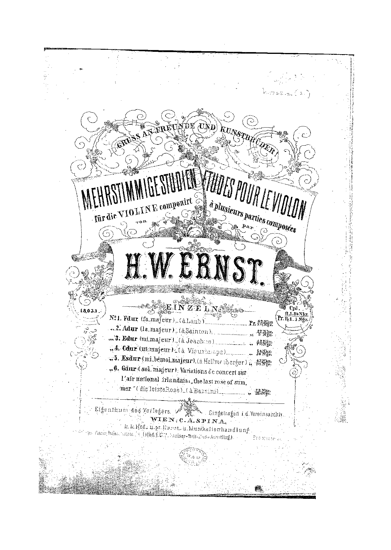 | Alternative. Title | Mehrstimmige Studien für die Violine; 6 Etudes pour le violon a plusieurs parties; Gruss an Freunde und Kunstbrüder! |