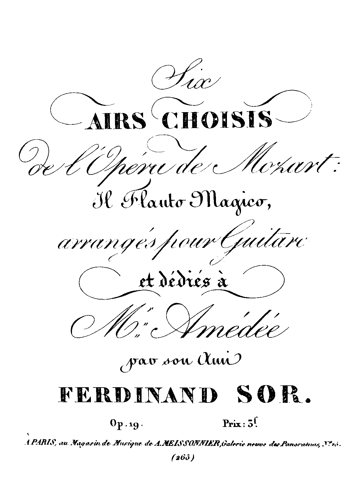 | Work Title | Six airs choisis de l'opera de Mozart: Il flauto magico |