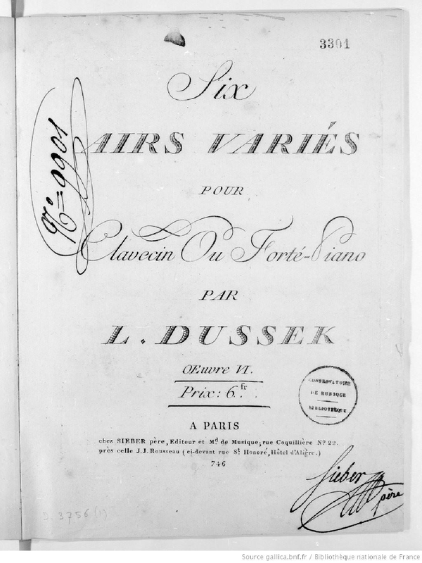 | Alternative. Title | Petits airs connûs variés pour le clavecin ou le forte-piano; Six Airs variés pour clavecin ou forté-piano |