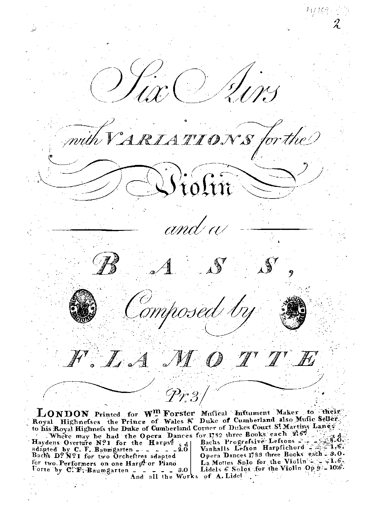 Six airs with variations for the violin and a bass