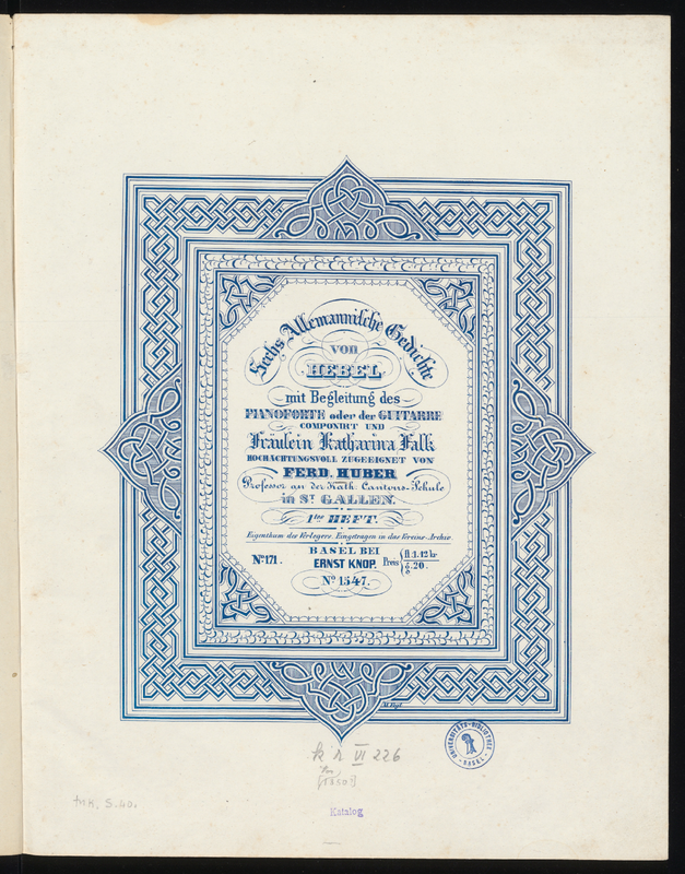 | Alternative. Title | Sechs allemannische Gedichte von Hebel mit Begleitung des Pianoforte oder der Guitarre |