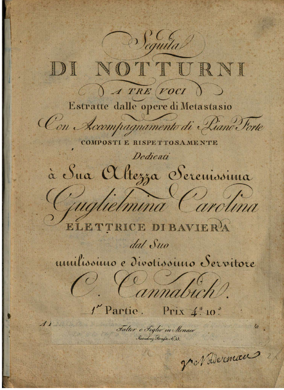 | Dedication | All'Illustrissima Signora Seeger, nata Schmidt |
