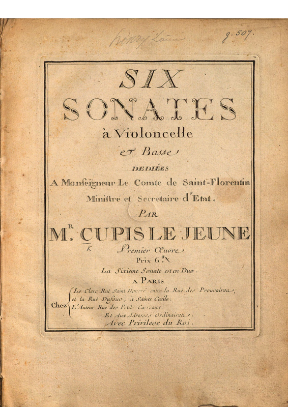 | Alternative. Title | Six Sonates a Violoncelle et Basse ... par Mr. Cupis le jeune ... la sixieme sonate est en duo |