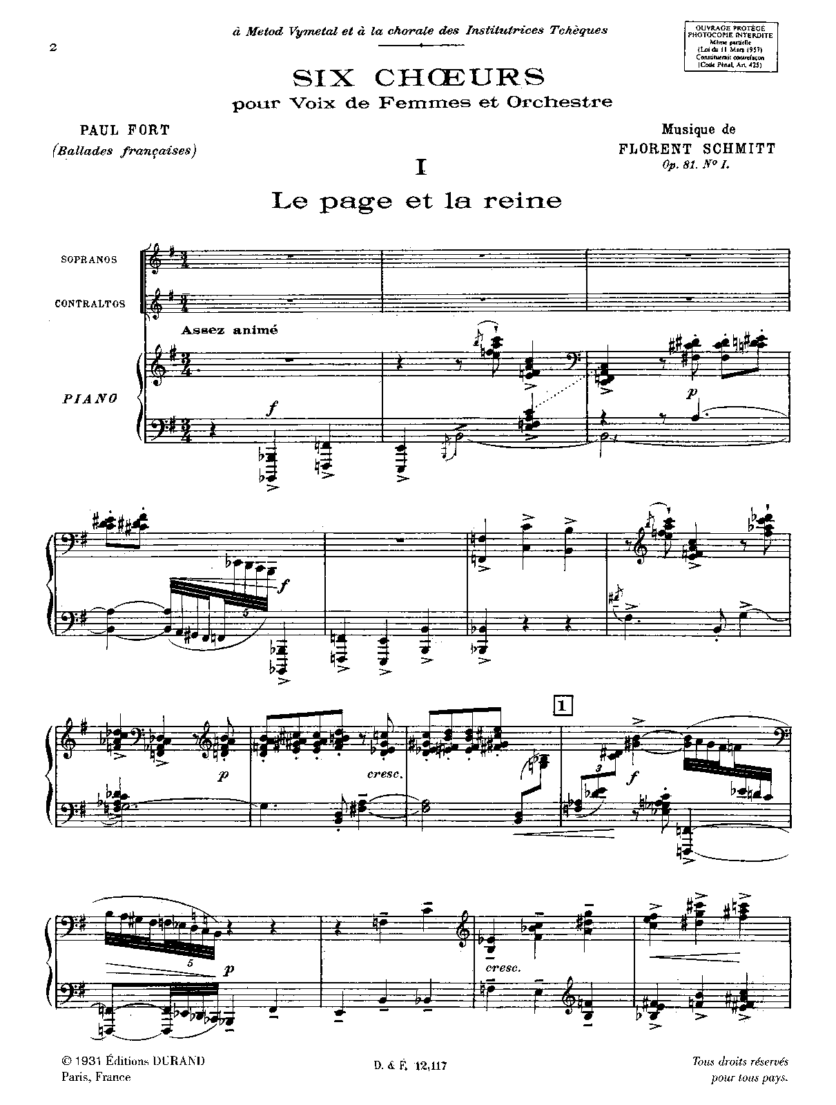 | Extra Information | Grove Music does not give an "a" appendage to the op.81, it is simply "op.81". Citation for first performance: see L'avant-garde musicale et ses sociétés à Paris de 1871 à 1939. |