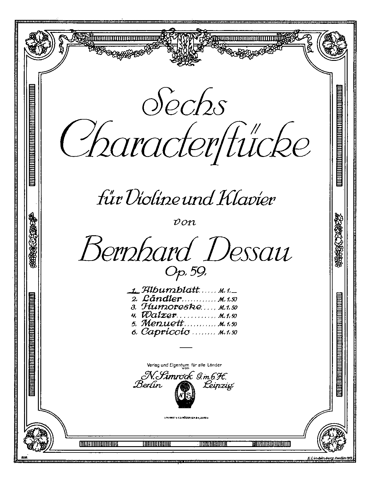 ⇒ 5 more: 2. Ländler • 3. Humoreske • 4. Walzer • 5. Menuett • 6. Capriccio