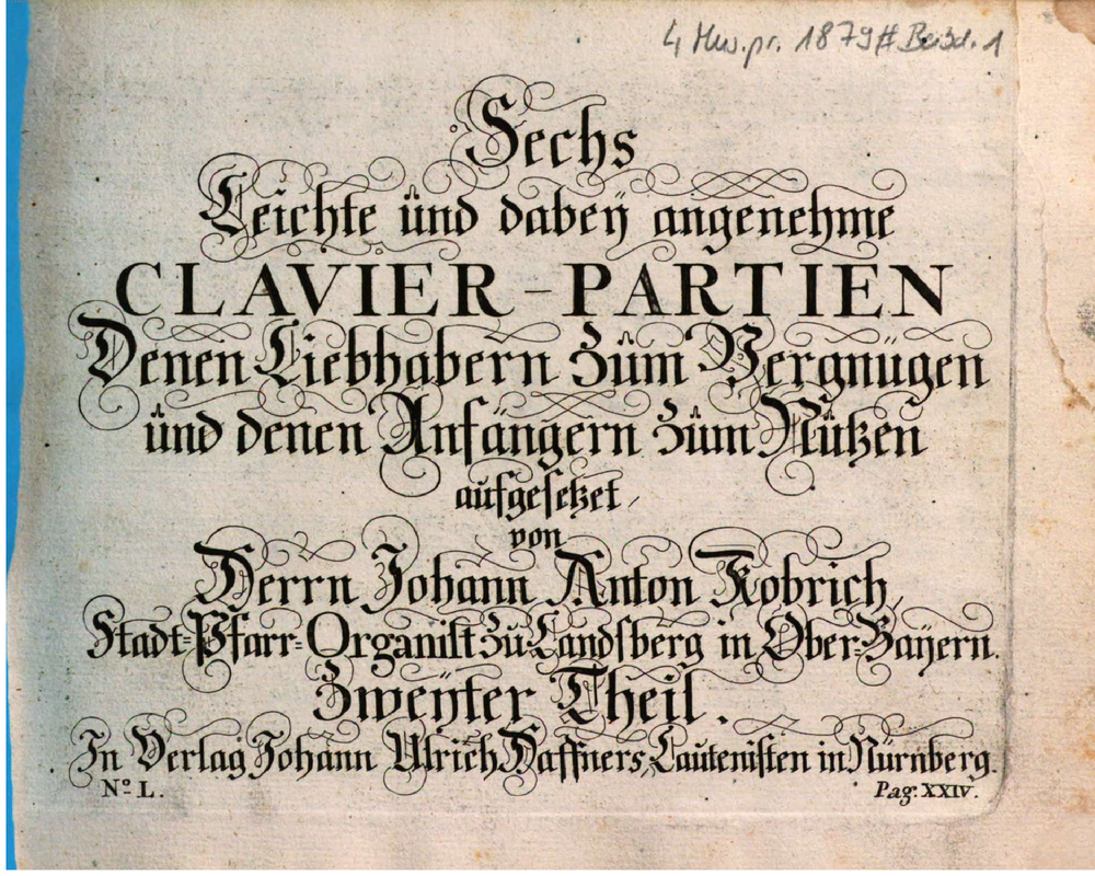 | Alternative. Title | Sechs leichte und dabey angenehme Clavier-Partien. Denen Liebhabern zum Vergnügen und denen Anfängern zum Nützen aufgesetzt |