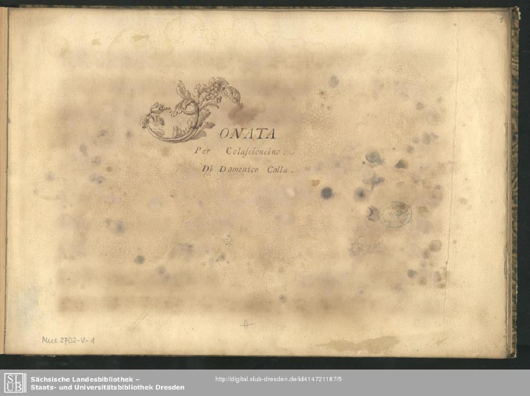 Lück (LückC 1954, p.64) vermutet, dass die vorliegende Handschrift um 1766 während einer Reise der Brüder Colla durch Deutschland nach Dresden gelangte. |