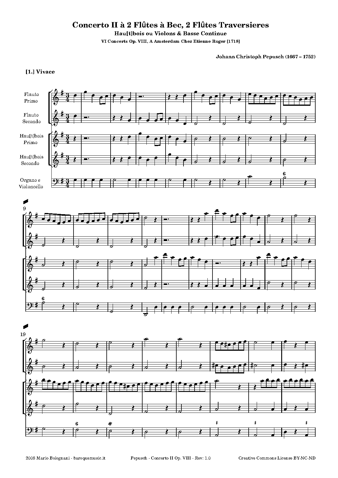 | Genre Categories | Concertos; For 2 flutes, 2 recorders, continuo; Scores featuring the flute; |