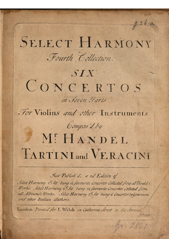 | Alternative. Title | Select Harmony Fourth Collection. Six Concertos in Seven Parts for Violins and other Instruments compos'd by Mr. Handel, Tartini and Veracini |