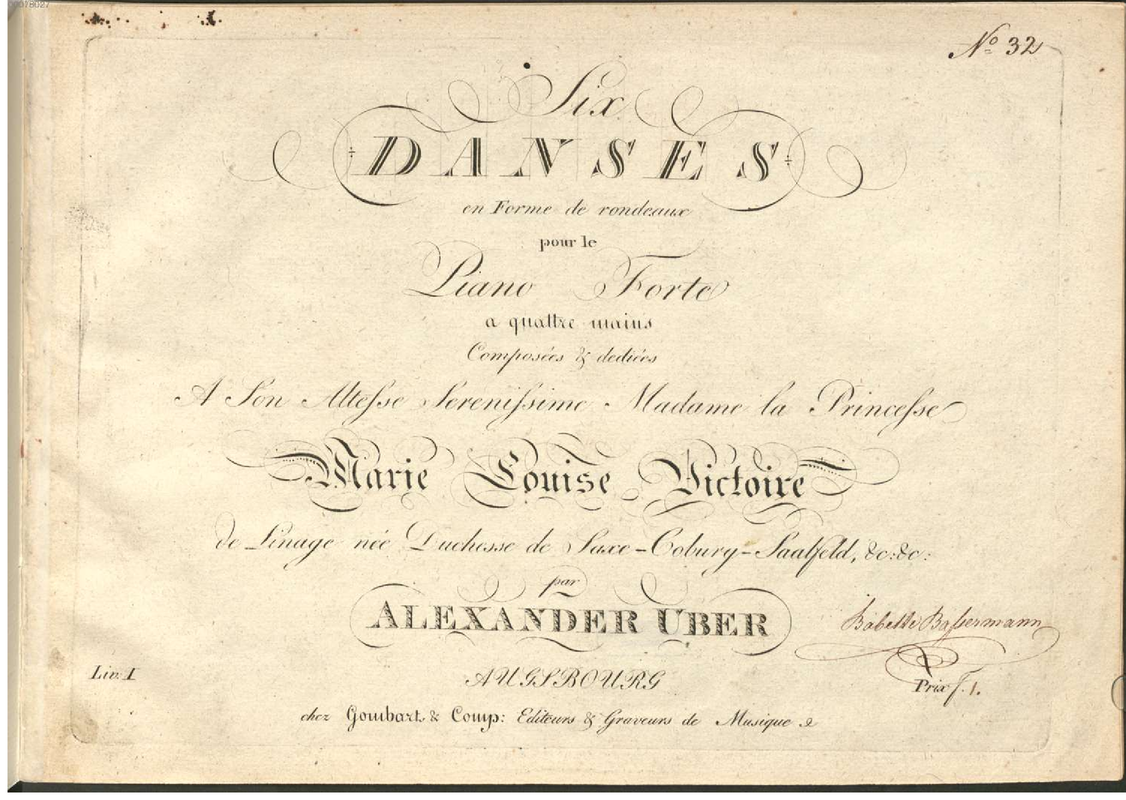 | Dedication | Princess Marie Louise Victoire de Linage, nee Duchesse de Saxe-Coburg-Saalfeld |