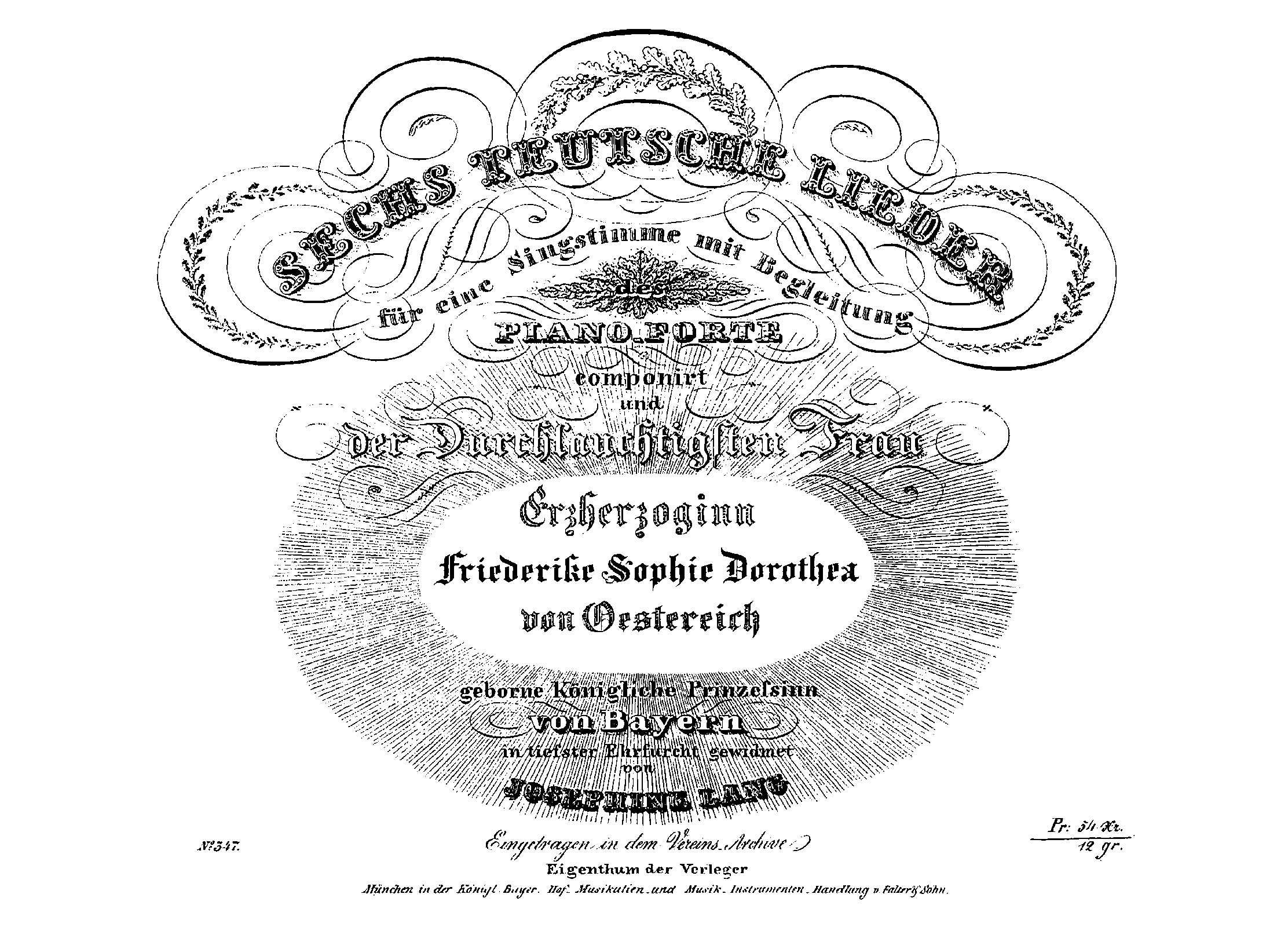 Der Durchlauchtigsten Frau Erzherzoginn Friederike Sophie Dorothea von Oesterreich geborne Königliche Prinzessinn von Bayern in tiefster Ehrfurcht gewidmet