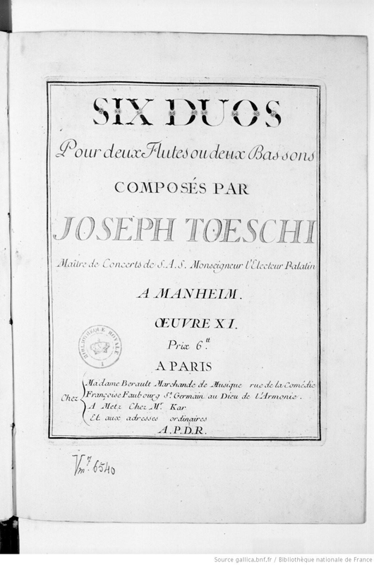 | Alternative. Title | Six Duos pour deux flutes ou deux bassons |