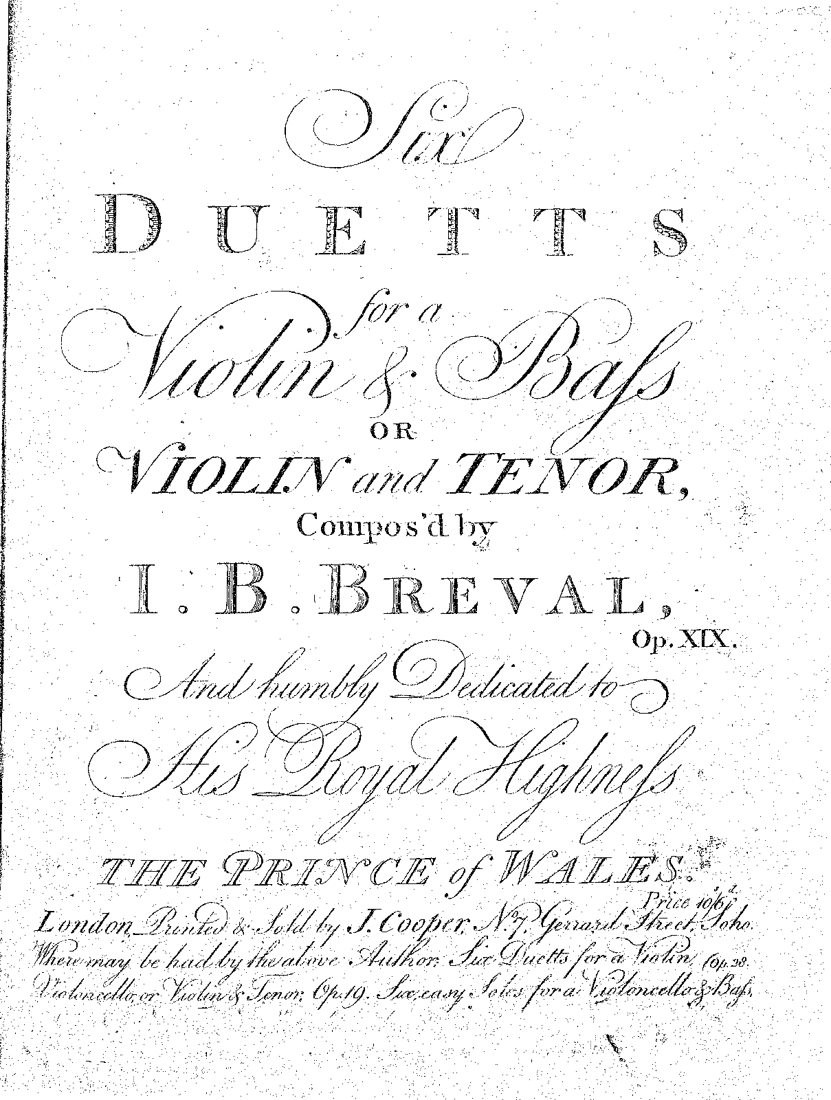 | Alternative. Title | Six Duetts for a Violin & Bass, or Violin and Tenor |