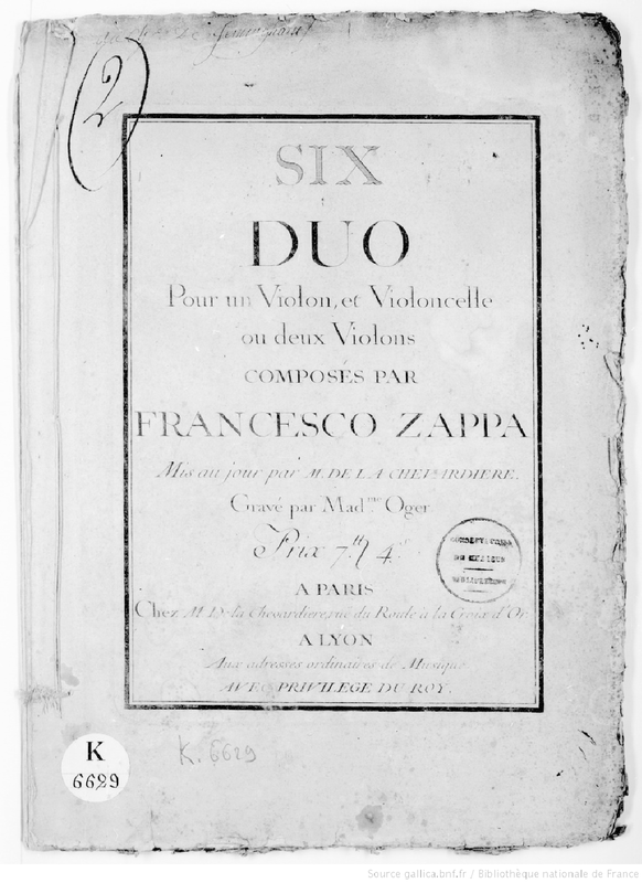 | Alternative. Title | Six Duo pour un violon, et violoncelle ou deux violons |