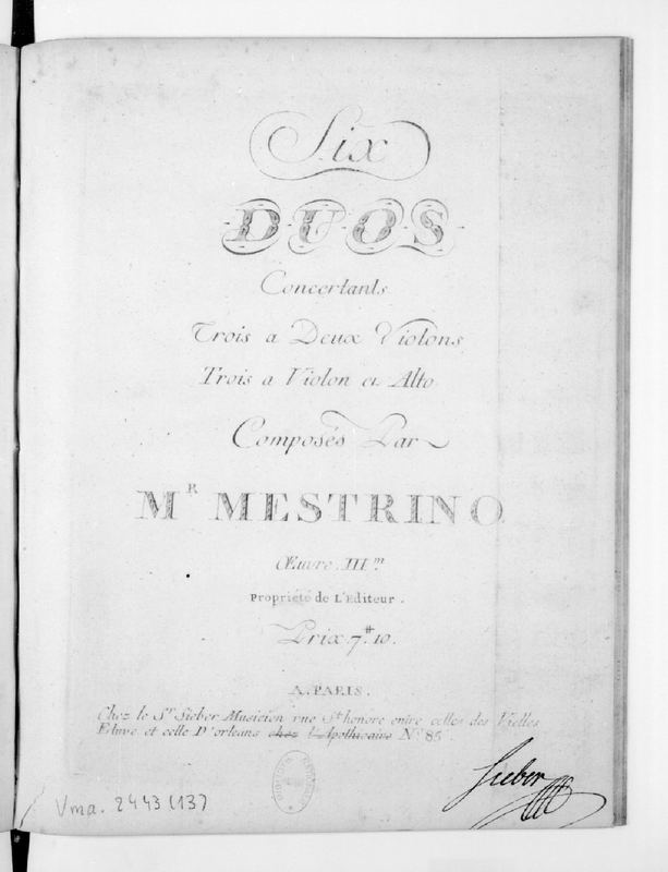 | Alternative. Title | 6 Duos Concertants, Trois a Deux Violons, Trois a Violon et Alto |