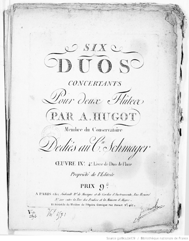 | Alternative. Title | Six duos concertants pour deux flutes |