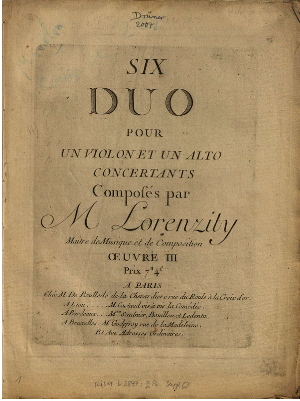 | Work Title | Six duo pour un violon et un alto concertants |