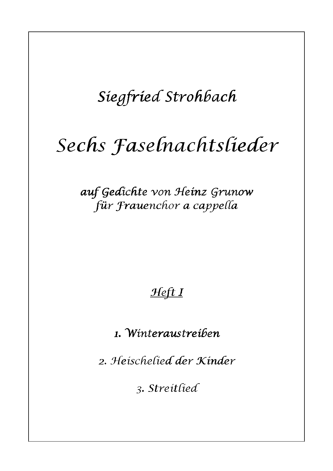 | Text Incipit | 1. Im Walde wohnt ein wilder Mann 2. Trum, trum, trum, Faselnacht geht um 3. Ein Affe und ein Bär 4. Wenn alle Mädchen drehen 5. Der Schneider Kretscham hat einen Bock 6. Es ritten drei Narren auf einem Floh |