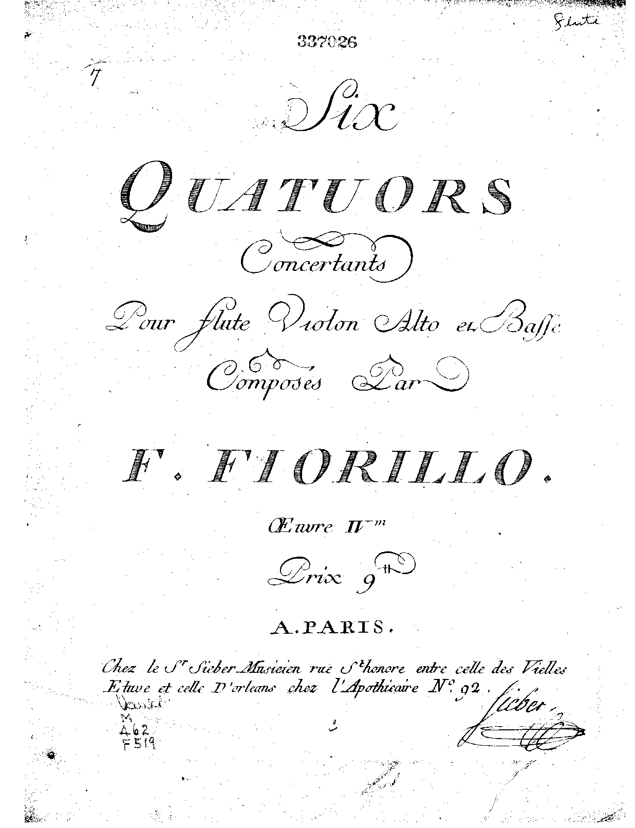 | Alternative. Title | Six Quatuors Concertants pour Flute, Violon, Alto et Basse |