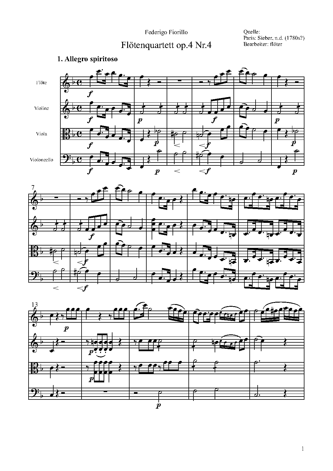 | Genre Categories | Quartets; For flute, violin, viola, cello; Scores featuring the flute; |