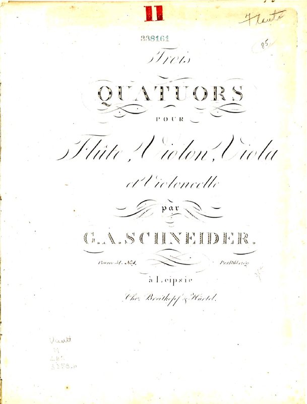 | Genre Categories | Quartets; For flute, violin, viola, cello; Scores featuring the flute; |