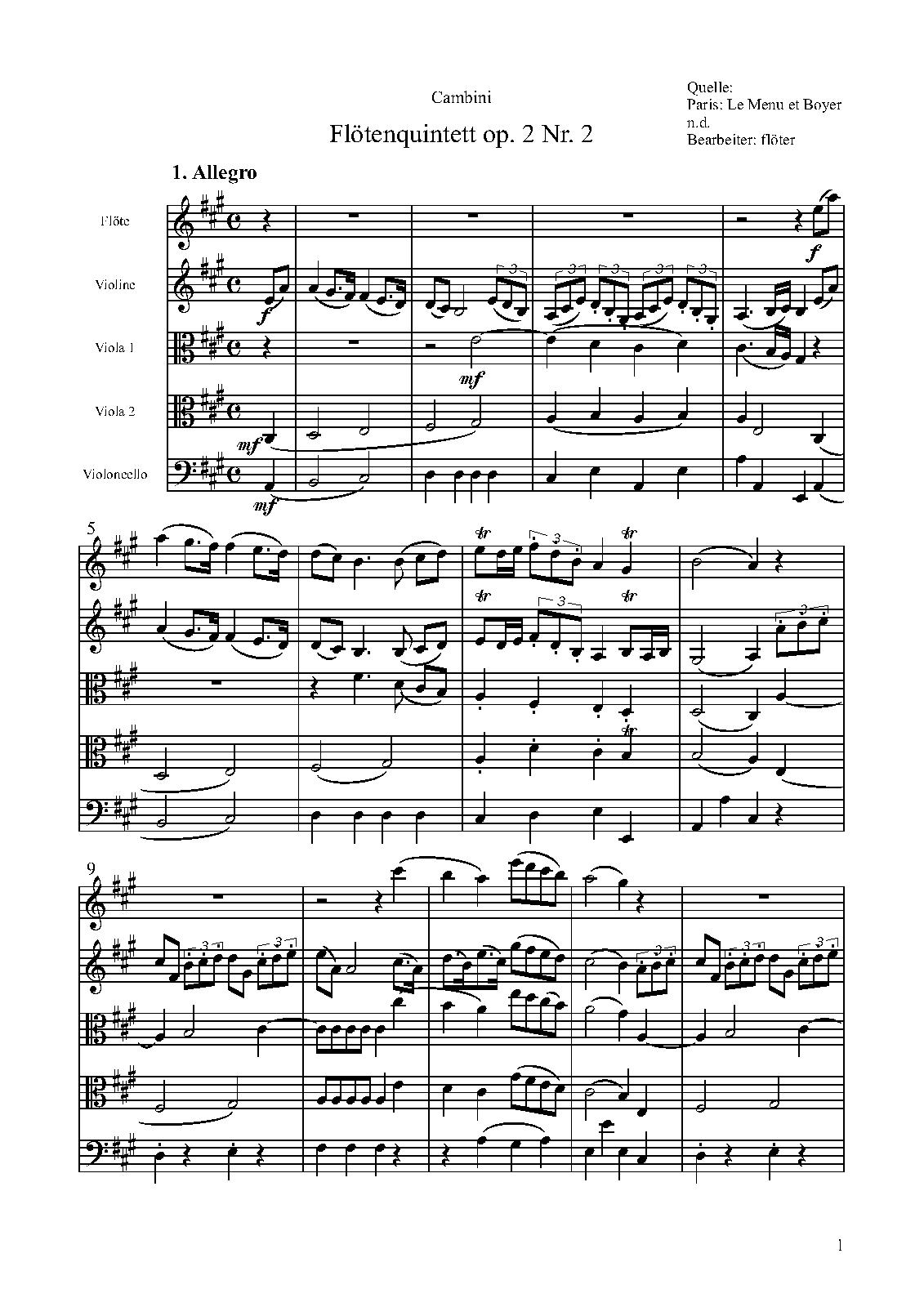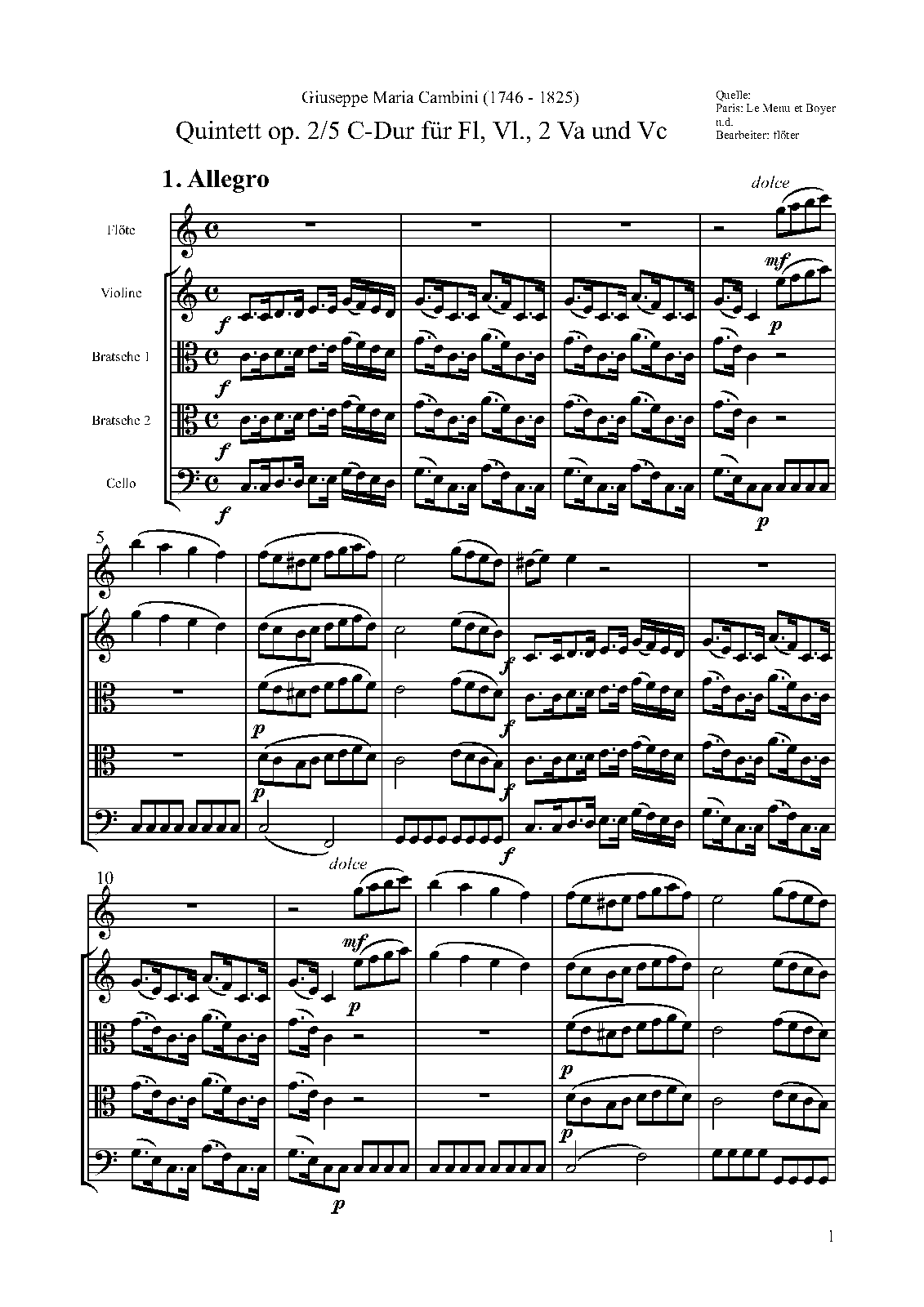 | Genre Categories | Quintets; For flute, violin, 2 violas, cello; Scores featuring the flute; |