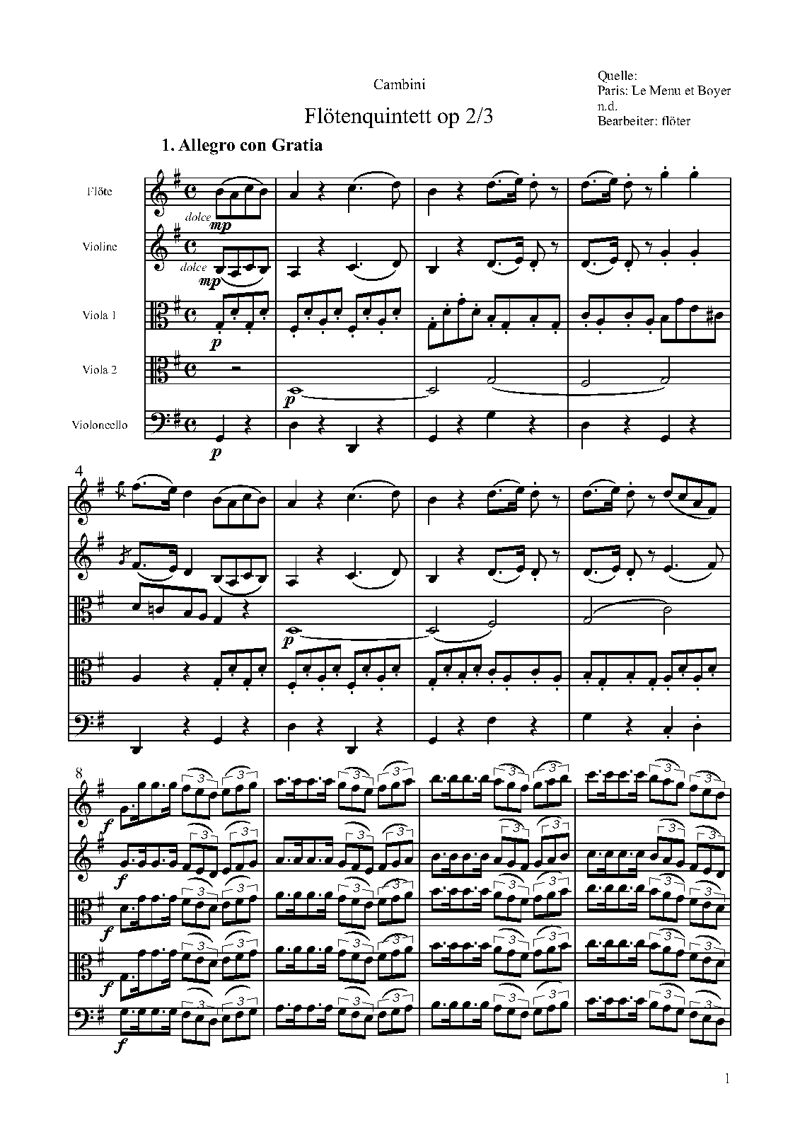 | Instrumentation | flute, violin, 2 violas, basso (probably cello) |