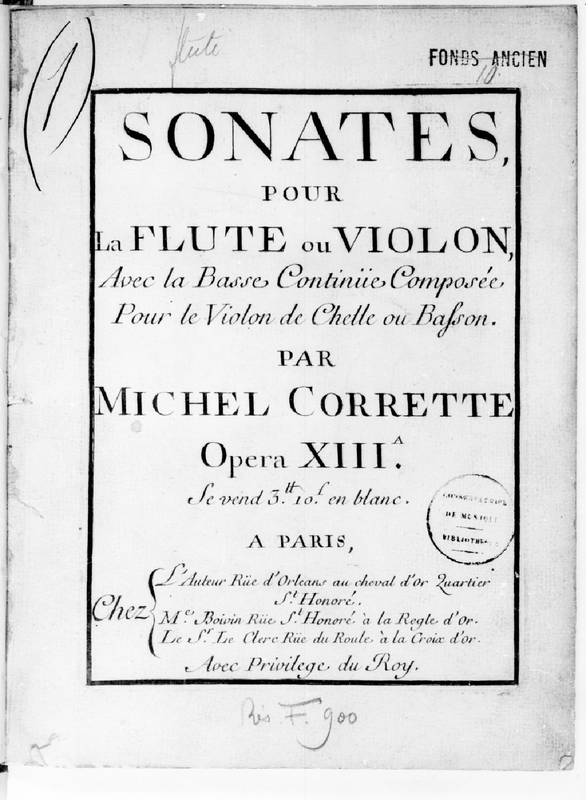 | Alternative. Title | Sonates pour la Flute ou Violon, avec la basse continue composee pour le violon de chelle ou basson |