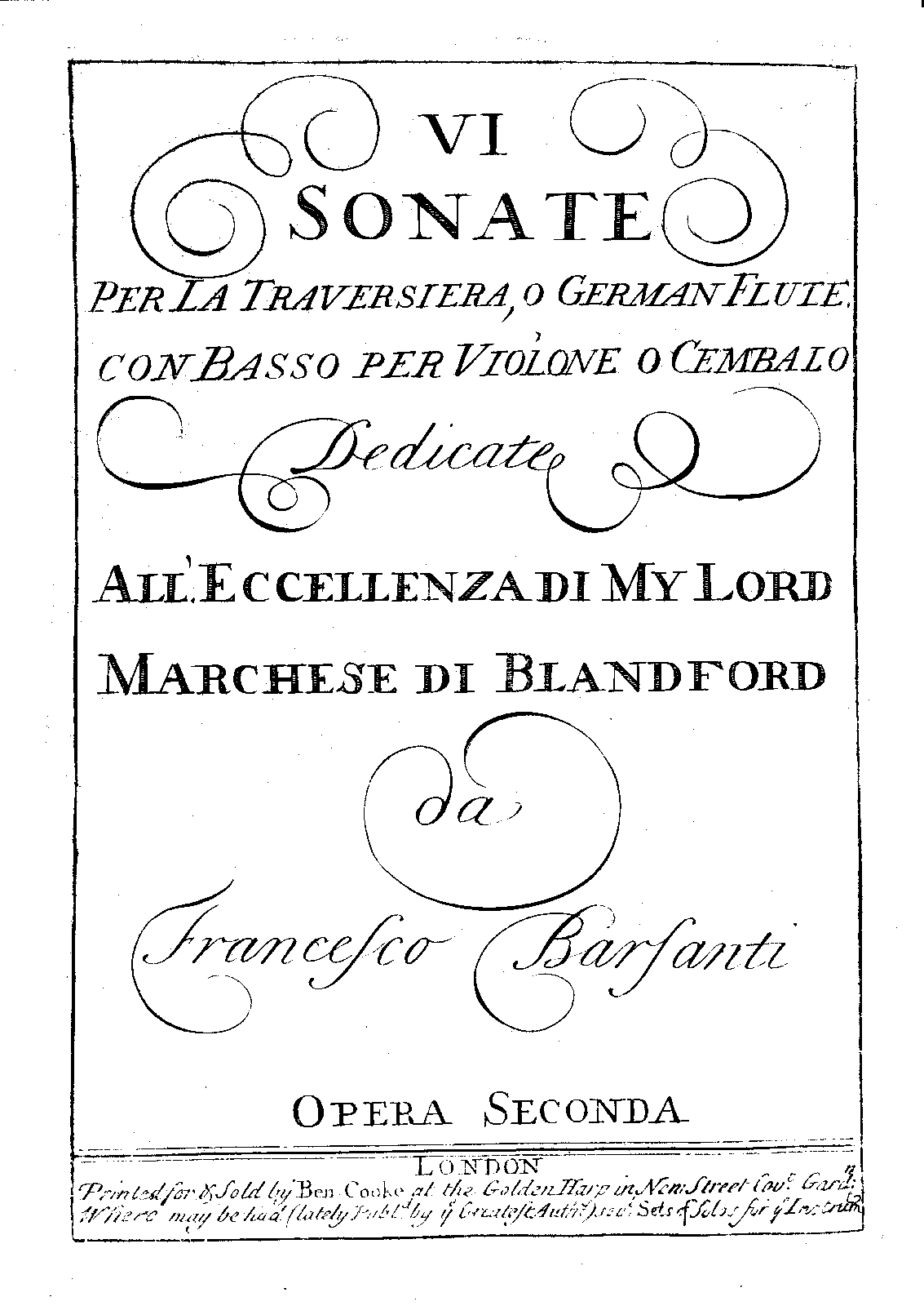 | Alternative. Title | VI Sonate per la traversiera, o german flute. Con basso per violone o cembalo. |