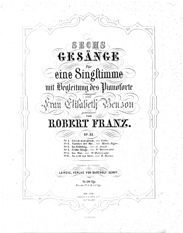 | Dedication | Frau Elisabeth Benzon (1827–1878) |