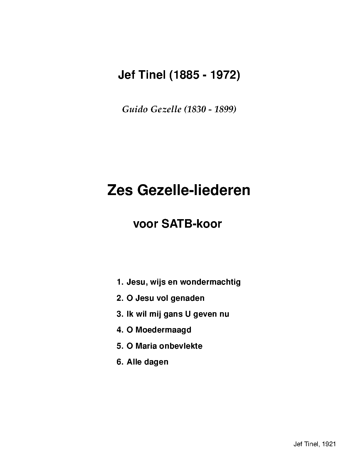 | Work Title | Zes Gezelleliederen voor SATB koor |