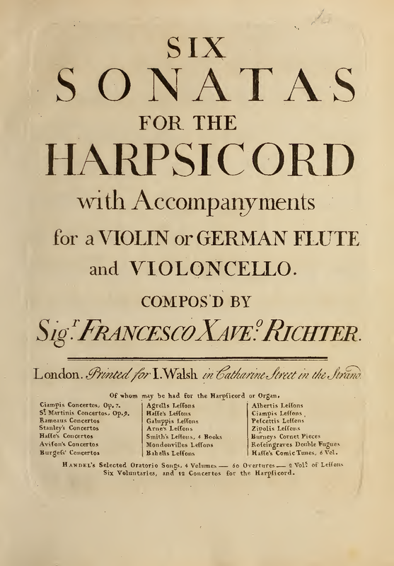 Six Sonatas for the Harpsicord with Accompanyments for a Violin or German Flute and Violoncello
