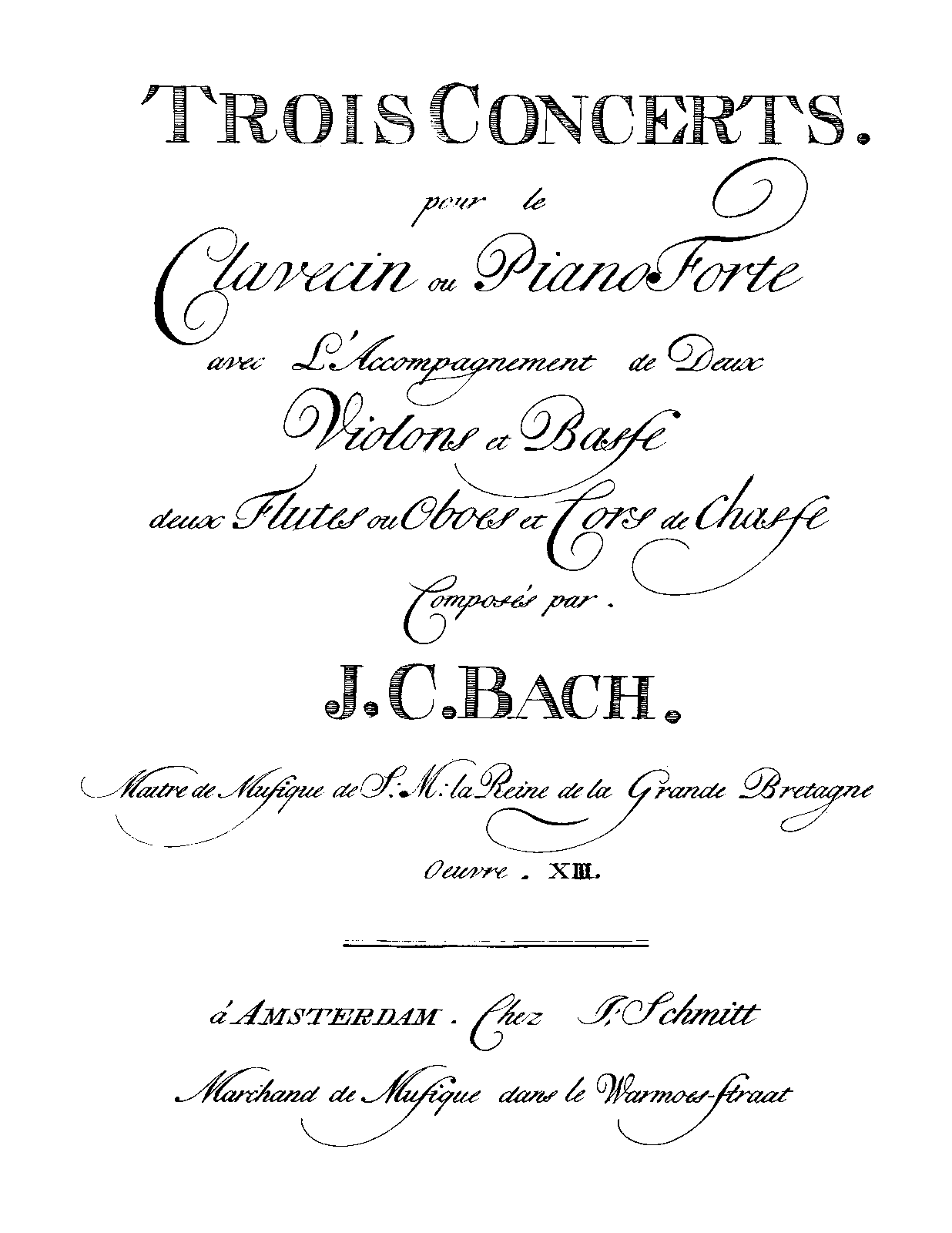 Trois Concerts pour le Clavecin ou le Piano Forte avec l'accompagnement des deux violons et basse, deux hautbois et cors de chasse ad libitum