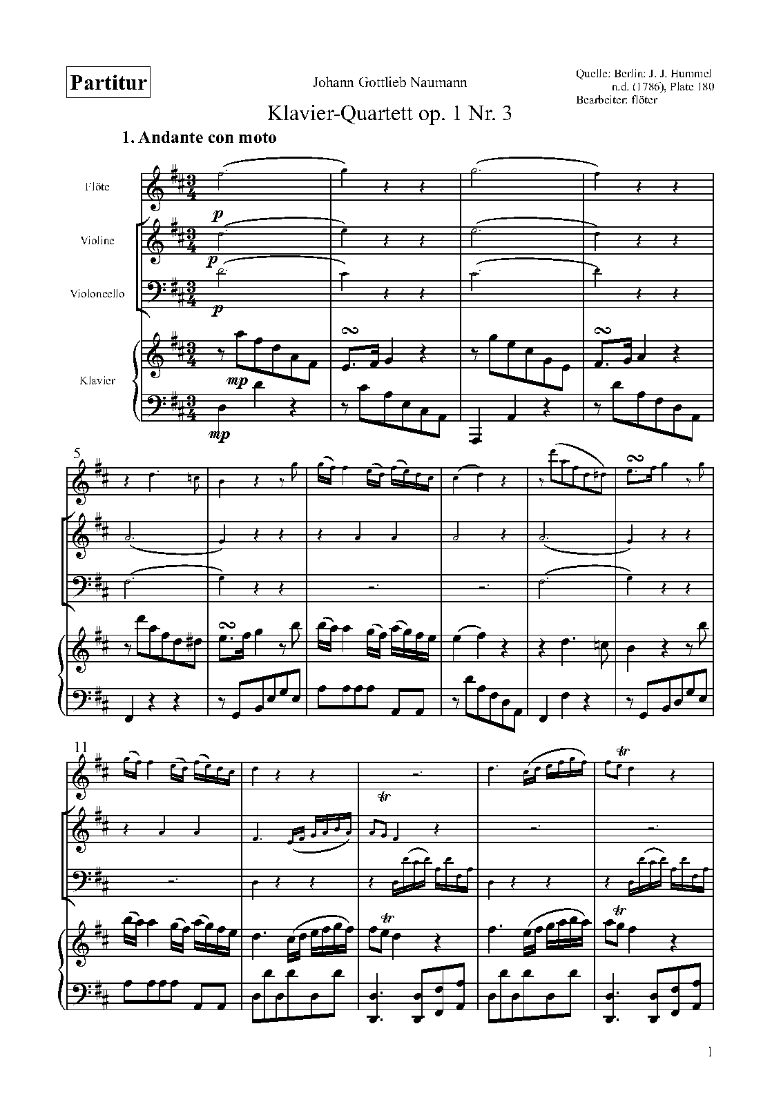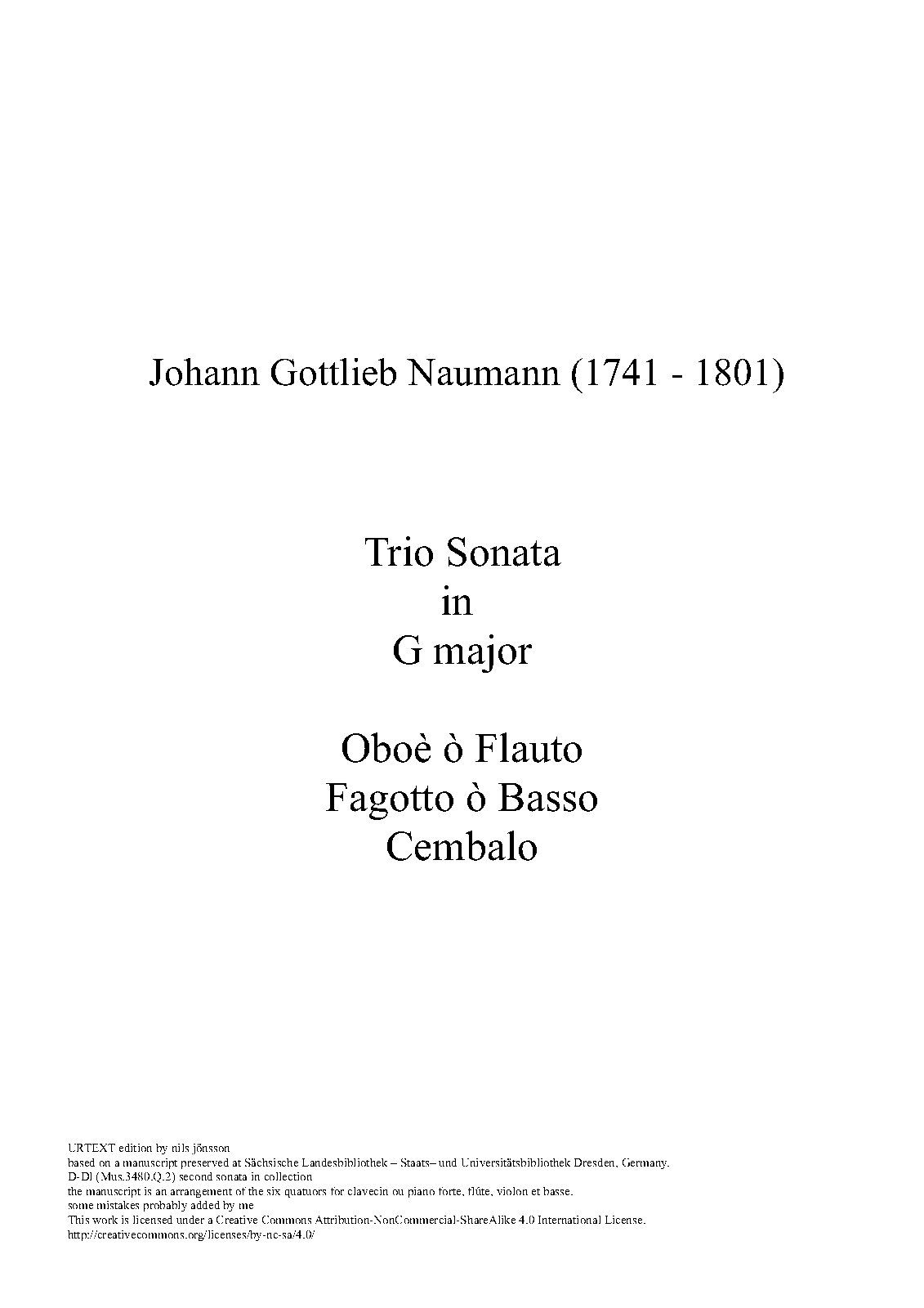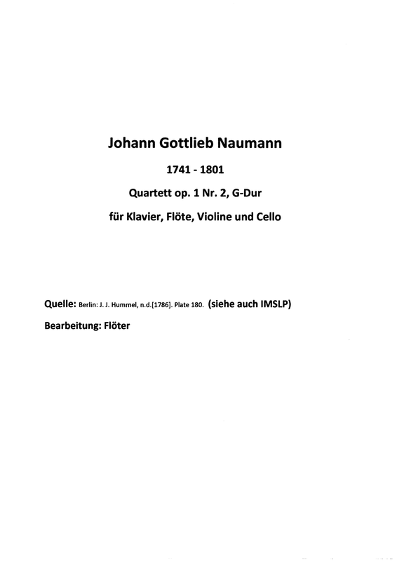 | Genre Categories | Quartets; For flute, violin, cello, harpsichord; Scores featuring the flute; |